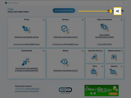 Hai una versione precedente al DiKe Go Sign? Disinstalla la versione precedente e scarica ed installa la versione aggiornata.