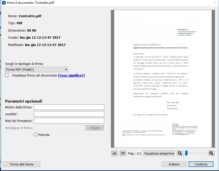 5. Scegli la tipologia di firma (Firma P7M – CadES o Firma PDF PAdES) da apporre al documento