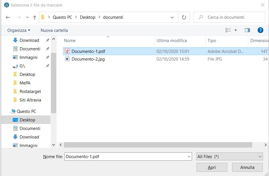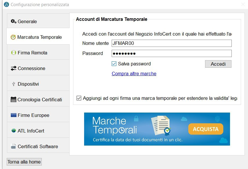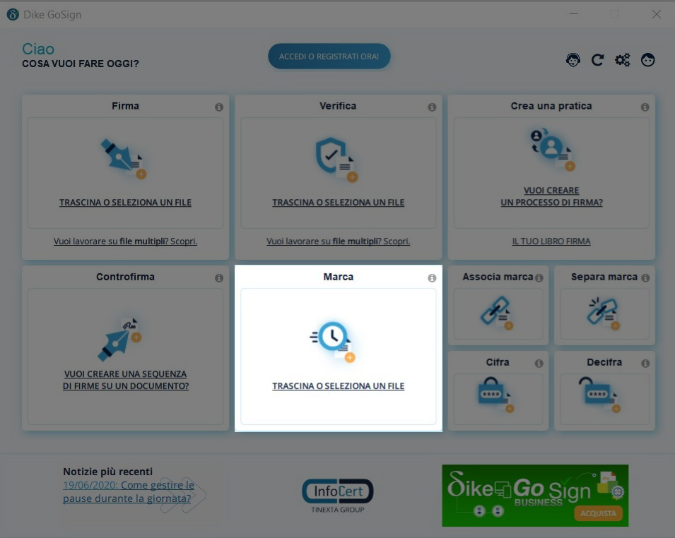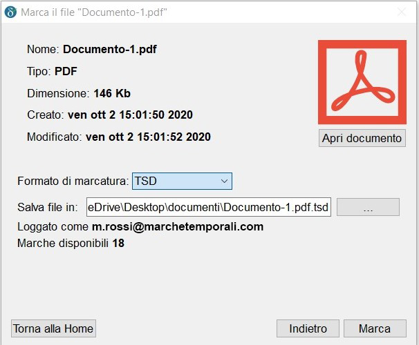 Una volta che hai associato le tue Marche Temporali InfoCert procediamo alla marcatura temporale del documento digitale.