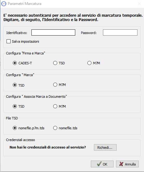 9. Inserisci l’Identificativo e la Password ricevuto in fase di acquisto delle marche se non hai già salvato precedentemente le credenziali